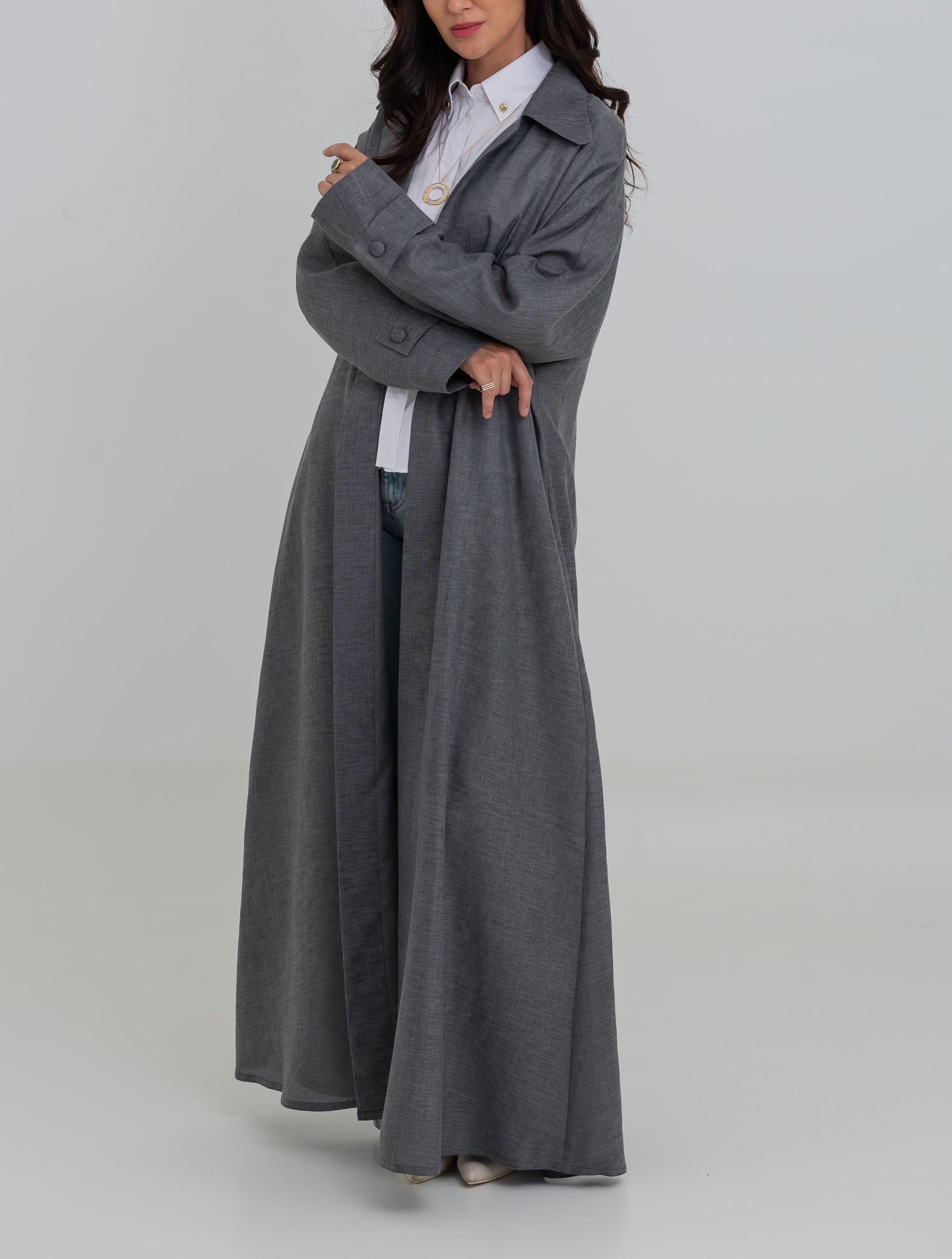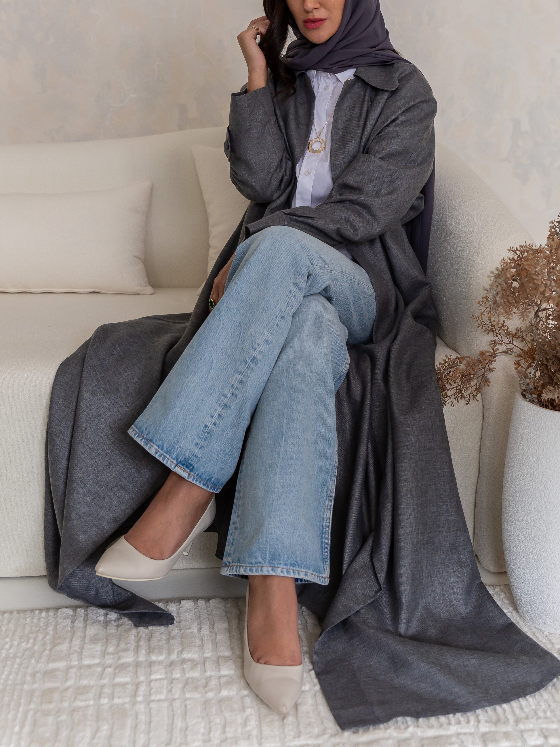 Drapella Linen Abaya in Gray