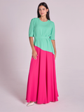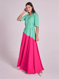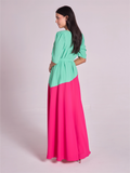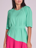 The Alice Maxi Dress combines lightweight fabric and a self-tie design for effortless style. The round neckline and puff sleeves add a touch of elegance, while the versatile split color design allows for easy coordination with any accessories. Perfect for any occasion, this midi dress is a versatile and stylish addition to any wardrobe.
